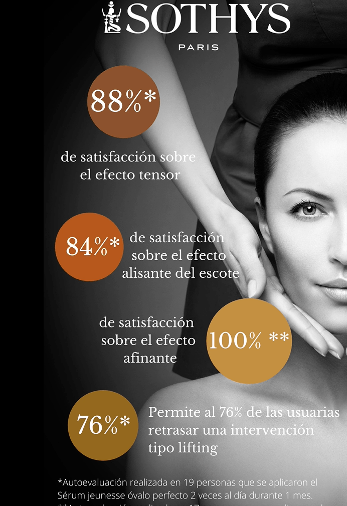La eficacia de Sothys junto a 1h15 de relajación para una piel visiblemente mas joven. Eficacia probada desde el primer tratamiento.